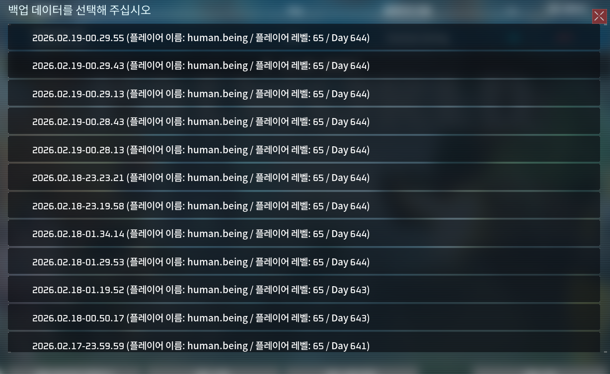 (죽기 전 시간대로 백업해주세요! 너무 전 시간대로 백업하면 오일리그에서 획득한게 날라가기 때문에 유념해주세요.)