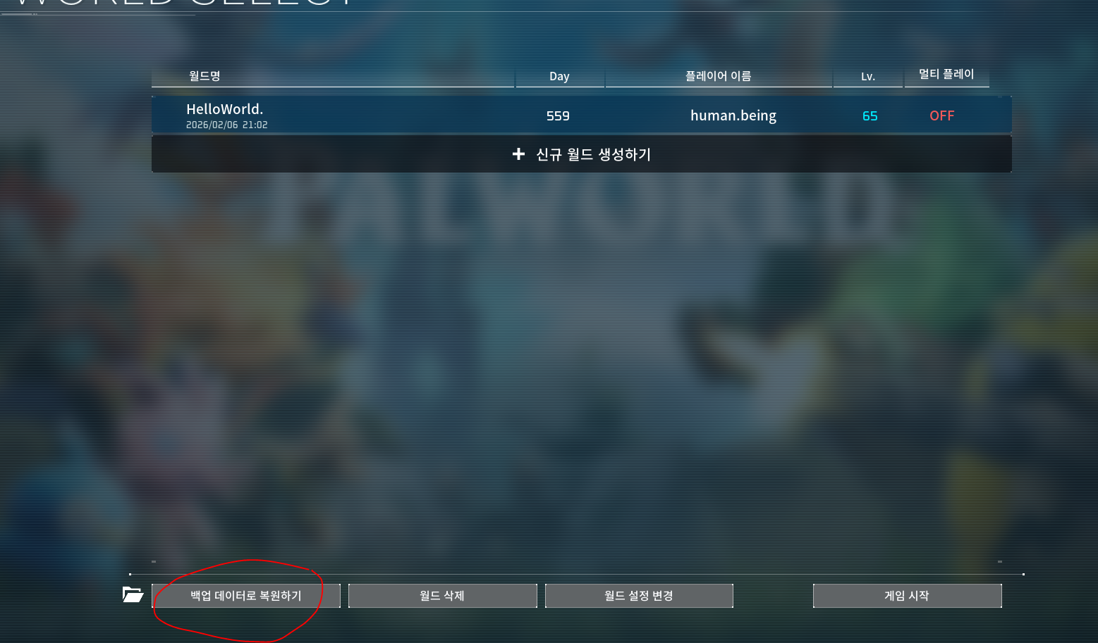 나오시면 항상보던 화면이 보이실텐데 맨 아래 좌측에 있는 백업 데이터로 복원하기를 클릭해주세요.